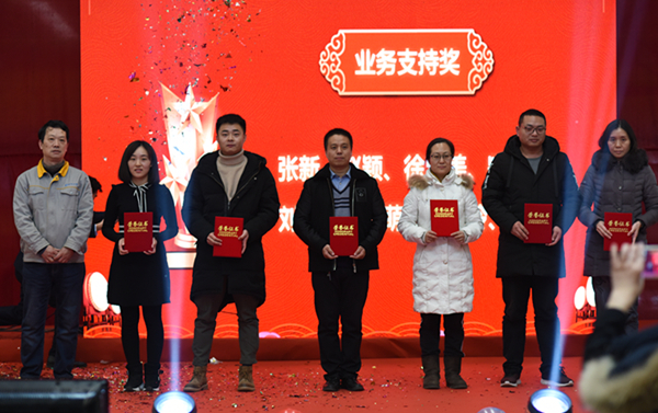 產業年會“頒獎典禮及迎新年會”在12日下午如期而至。焊機制作部首秀群舞《恭喜發財》。那紅火、熱烈、吉祥的氣氛立即嗨遍全場。時代各部門紛紛派出了自己的文藝明星登臺獻技。他們將各自的才藝及特長與公司文化相融合為時代同仁呈現了一場熱鬧、歡快的演出。隨著一浪高過一浪的微信抽獎活動,聯歡會現場達到沸點。一年一度的頒獎活動穿插在聯歡活動中逐一展開。一位位時代精英從領導手中接過令人艷羨的榮譽,這是時代對辛勤勞動者的肯定和贊譽。聯歡會最后一曲合唱《明天會更好》表達了全體時代人對2019年的憧憬和渴望。時代科技2018年年終總結會暨2019年工作計劃會在響徹四方的嘹亮歌聲中落下帷幕。