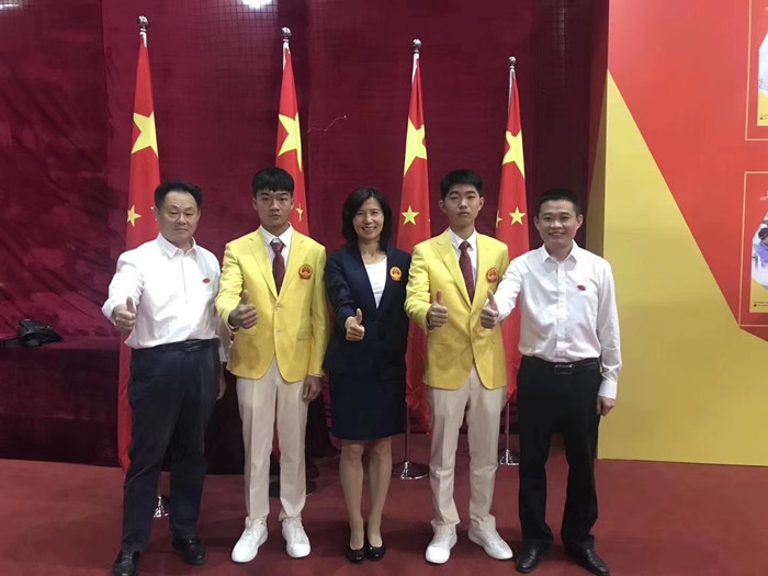 第45屆世賽焊接賽項寒冠軍趙脯菠和專家合影