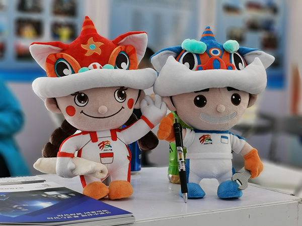 大賽吉祥物“揚揚”和“悅悅” | 吉祥物迎接四方來賓 |