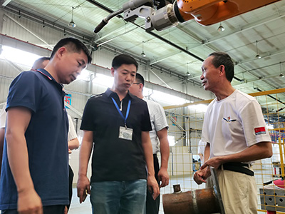 時代焊接工藝實驗室主任張自祥與協會專家戴建樹進行現場交流