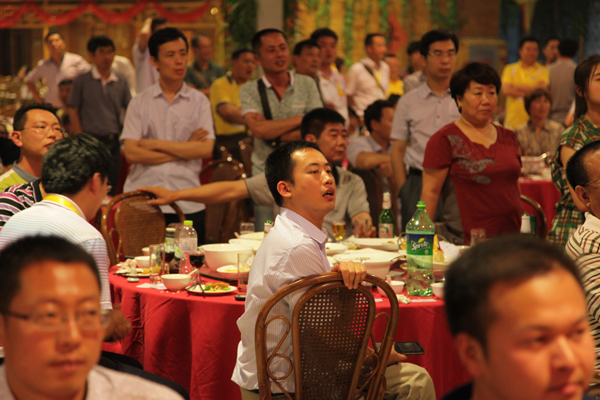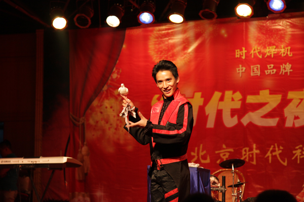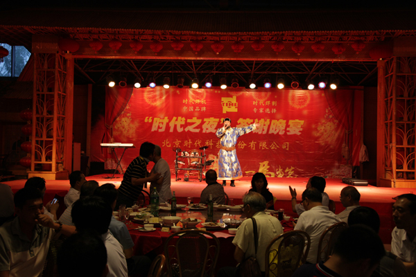 本次時(shí)代之夜活動廳堂布置以紅色調(diào)為主,襯托出活動熱烈喜慶的氣氛。宴會現(xiàn)場高朋滿座,勝友如云,宴席前面寬大的表演舞臺上精彩節(jié)目輪番上演。許多節(jié)目演到高潮的時(shí)候,觀眾都紛紛從餐桌旁站起來舉起手機(jī)拍攝那精彩的瞬間。激動人心的抽獎環(huán)節(jié)調(diào)動了所有人的神經(jīng),大家都期待著大獎能落到自己手中,但獎品畢竟有限,來自某地區(qū)某單位的來賓抽中了最后的大獎。一位外國朋友在抽獎活動中也成功中獎。